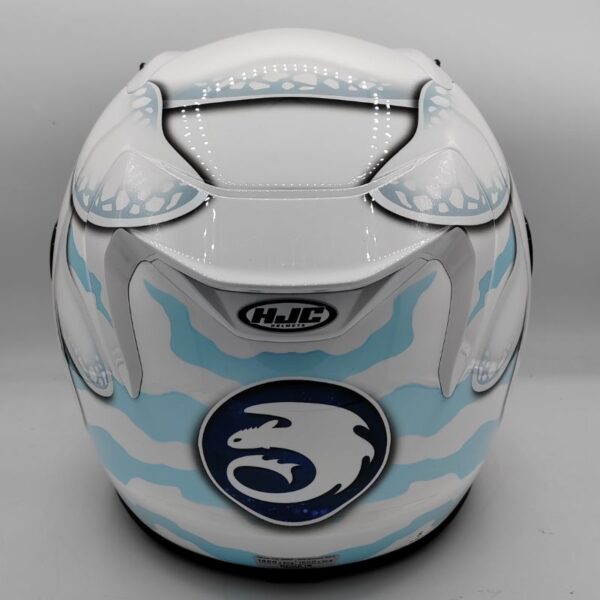 HJC è entusiasta di presentare il nuovo modello di casco HJC RPHA12 Universal Light Fury, una creazione che rappresenta un connubio perfetto tra innovazione tecnologica e design accattivante. Questo casco, omologato secondo la normativa ECE-2206, viene venduto con una visiera trasparente, ma il suo vero tratto distintivo è la grafica ispirata a Light Fury, un personaggio molto amato del franchise How to Train Your Dragon di DreamWorks Animation.